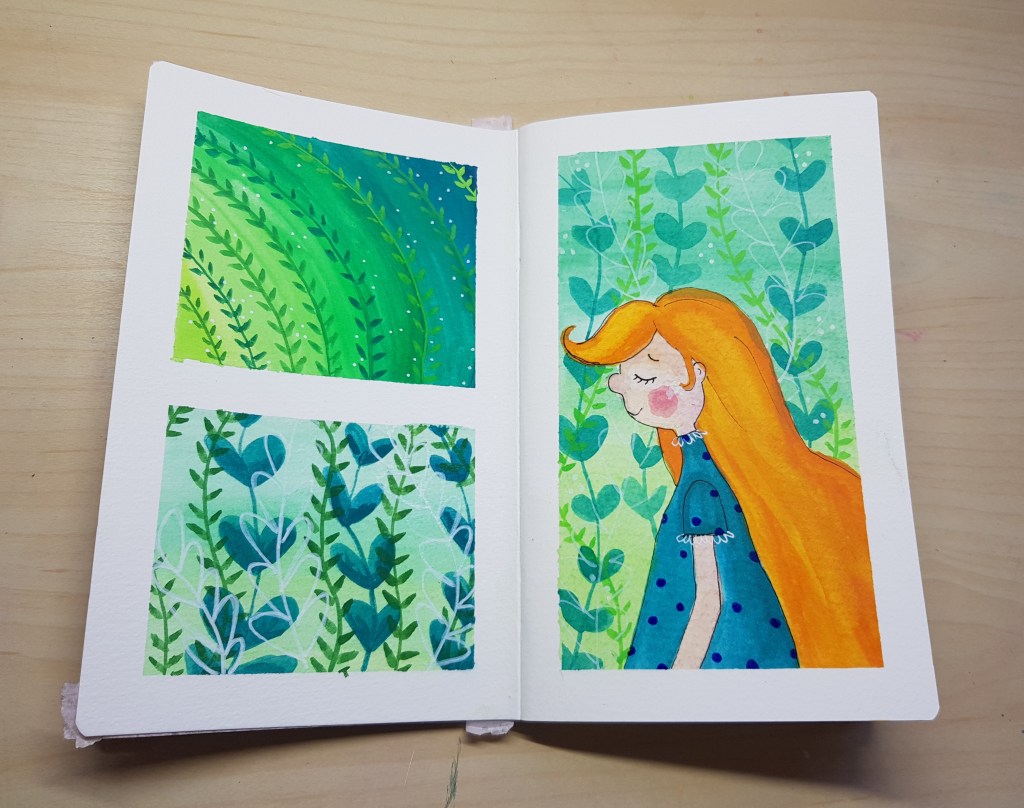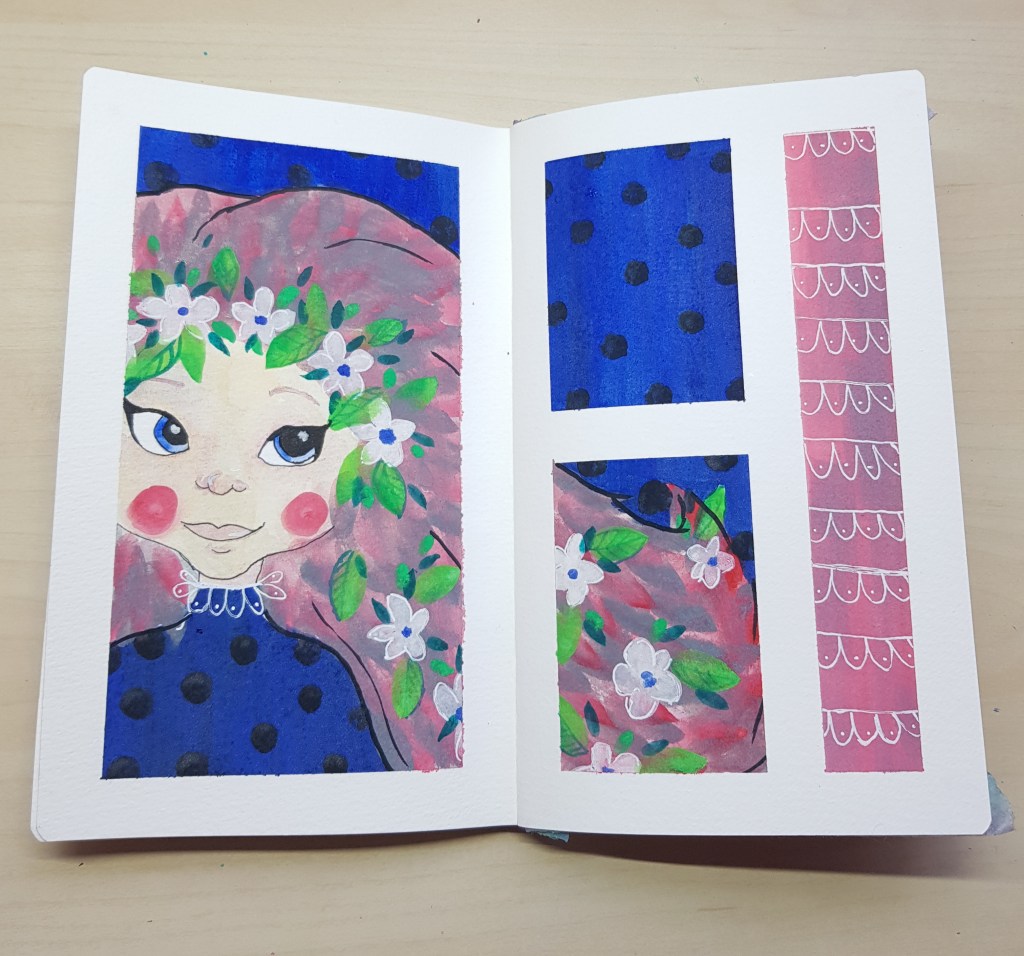 The next page layout is one that I really had no plans for, which is unusual for me as I like to plan my pages within an inch of their life! You can see the painting video for this on my YouTube page.